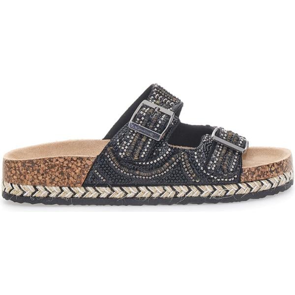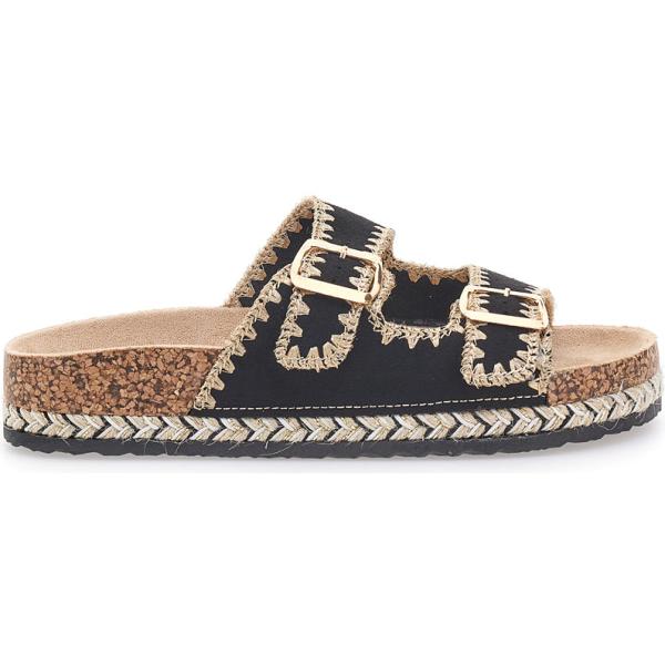 Comode e attuali, queste ciabatte nere da donna con ampia fascia e fibbia regolabile si distinguono per la suola effetto sughero e il look casual. Perfette per le giornate estive più rilassate, sono facili da abbinare e pensate per il comfort quotidiano.