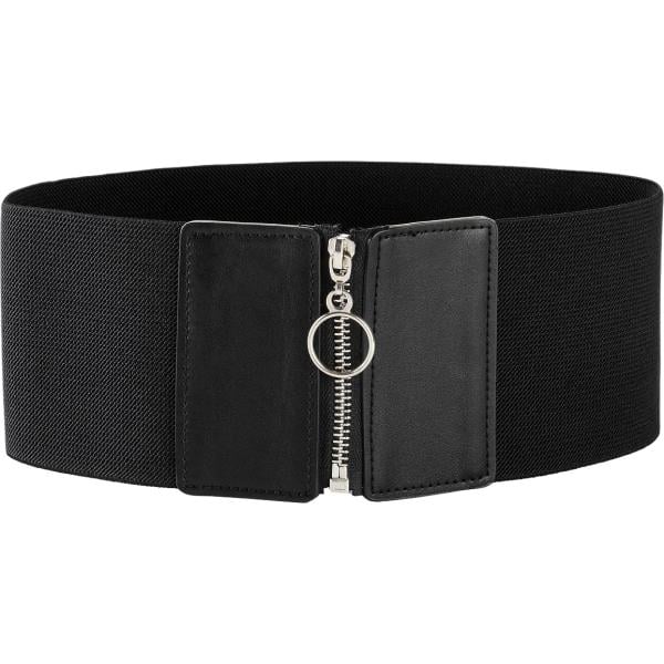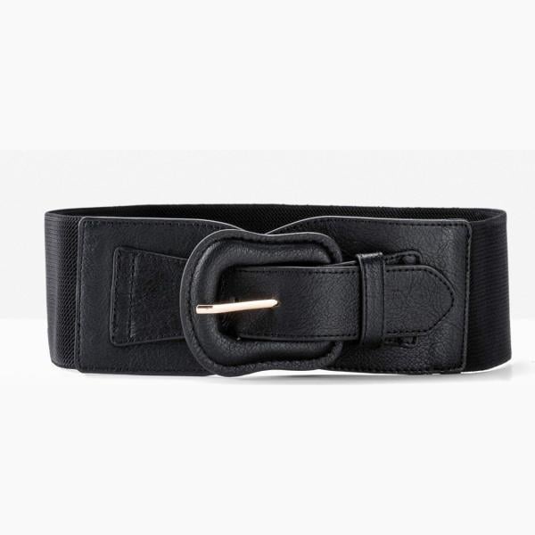Camicia da donna in bianco avorio collo a punta a maniche lunghe con bottoni Imperial, Stivaletti da donna in nero pece con stampe effetto scamosciato con tacco con cinturino in ottone Lauren, Borsa tote da donna in nero pece in pelle Lauren, Pantaloni da donna in nero pece in pelle bonprix, Cintura da donna in nero pece con cintura Dixie, Gilet da donna in nero pece girocollo senza maniche Dixie.