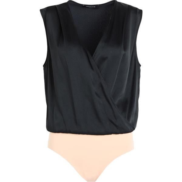 Corpo da donna in nero pece collo a v a maniche lunghe in seta Pinko