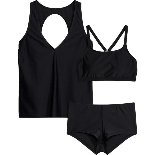 L'eleganza del nero fa sì che ogni costume intero diventi un pezzo distintivo nel tuo guardaroba estivo. Abbinalo con accessori come un foulard nero o una borsa chic per completare il tuo outfit raffinato. Trasforma il tuo look con facilità e sii sempre impeccabile in ogni situazione.