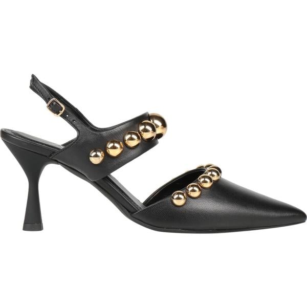 Pelle borchie tinta unita con applicazioni interno in pelle chiusura con fibbia punta stretta tacco a rocchetto suola in gomma contiene parti non tessili di origine animale decolleté slingback Pelle