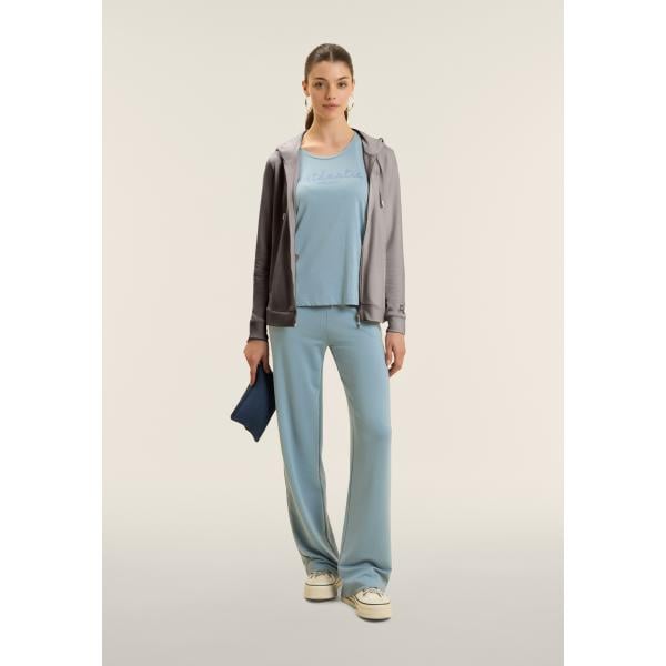 Dal design semplice e femminile questa felpa sportiva da donna è realizzata in felpa modal garzata elasticizzata perfetta per offrire comfort termico e morbidezza. Ha vestibilità regolare fondo con spacchi laterali e scollo girocollo. Sul fronte una grafica con logo FREDDY è impreziosita da strass bicolori.