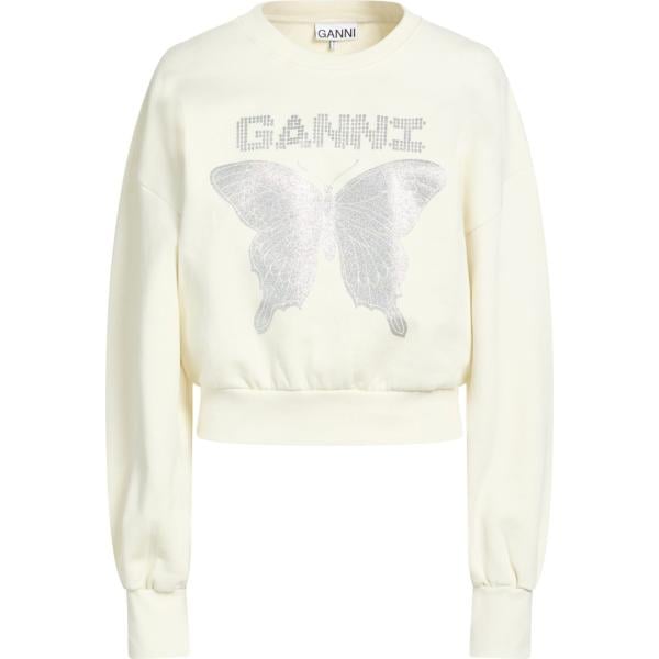 Felpa da donna in bianco avorio con strass con scollo con spacco in plush Freddy
