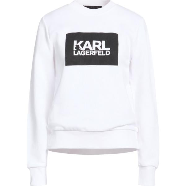 Felpa da donna in bianco neve con stampe girocollo a maniche lunghe in cotone organico Karl Lagerfeld