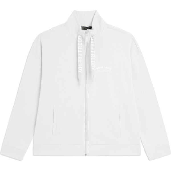 Felpa sportiva da donna in bianco neve collo senza cappuccio a maniche lunghe con zip Terranova
