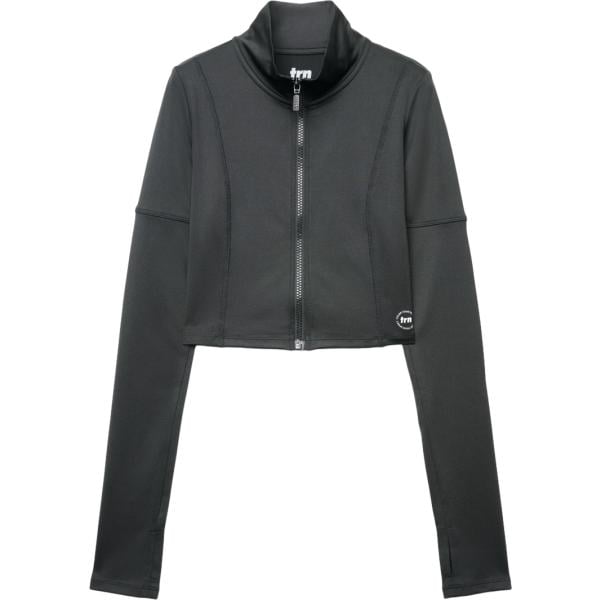 Felpa da donna a tinta unita, modello crop con zip frontale e collo alto senza cappuccio. Maniche lunghe e piccolo logo applicato sul fondo. Vestibilità aderente che segue la figura, ideale per lallenamento con leggings o pantaloni jogger. Linea Active.