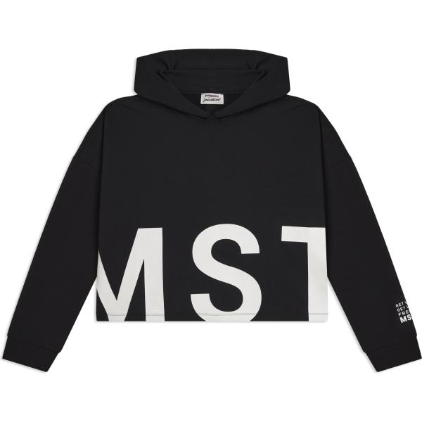 Felpa con cappuccio da donna in nero pece con stampe collo con cappuccio