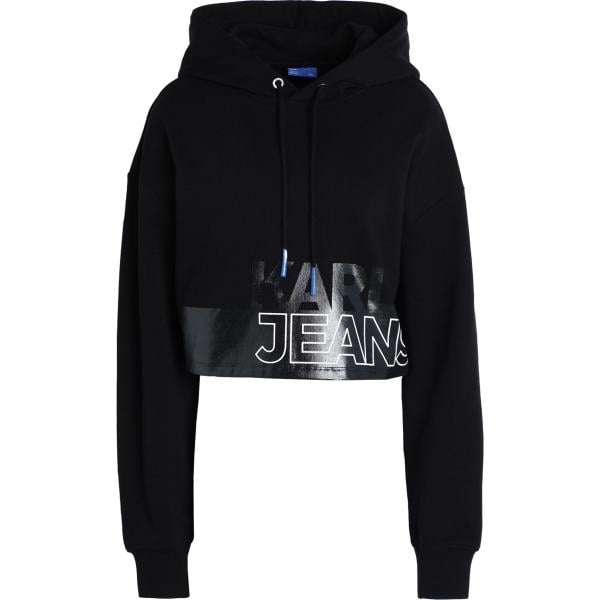 Felpa con cappuccio da donna in nero pece con stampe lavorato a maglia collo con cappuccio con zip