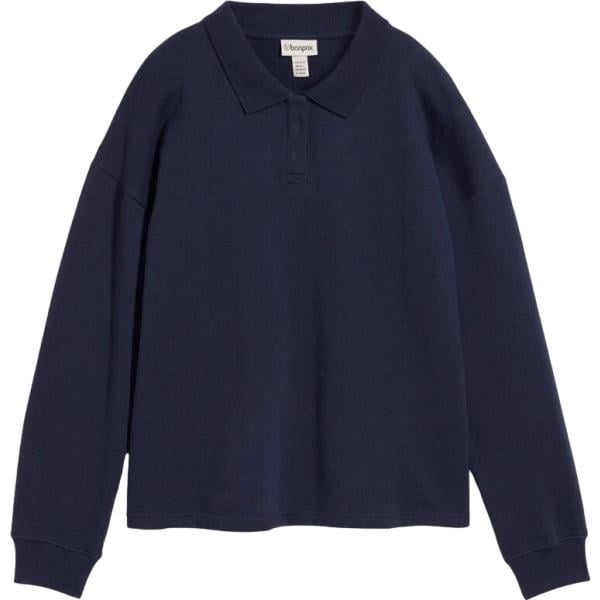 Felpa da donna in blu scuro girocollo bassa in pile