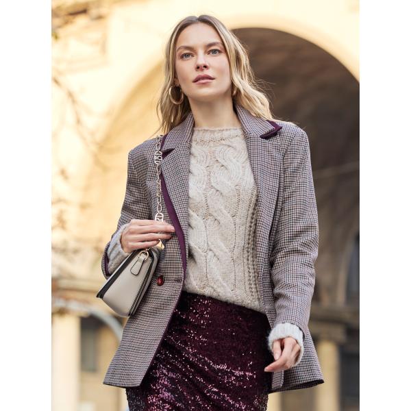 <p>Il Blazer Fantasia Check è un capo elegante e versatile, pensato per accompagnare con stile molteplici occasioni, dallufficio alla laurea fino al tempo libero. Realizzato in tessuto finestrato con disegno check, si distingue per i bottoni ricoperti e le patte effetto tasca che donano un tocco sofisticato. La chiusura doppiopetto con bottoni completa il design strutturato, garantendo una vestibilità femminile e contemporanea. Il Blazer Fantasia Check si abbina perfettamente al Tubino Fantasia Check CFC0126594003B462 e si completa con calzature e accessori di collezione, adattandosi facilmente a look formali o più rilassati grazie alla sua versatilità. Perfetto per chi cerca un capo di qualità e facile da personalizzare, il Blazer Fantasia Check è un investimento di stile per ogni guardaroba. Il capo è <strong>Made in Italy</strong> La modella è alta 1,77 m ed indossa la taglia S.</p>