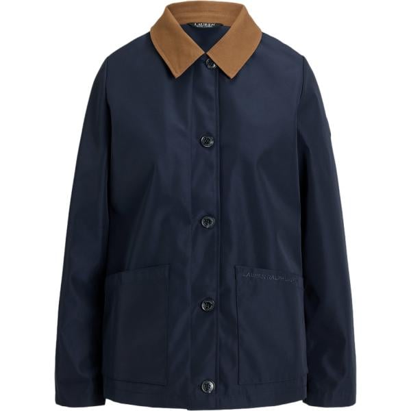 Giacca soprabito da donna in blu scuro a righe collo aperto tessuto impermeabile