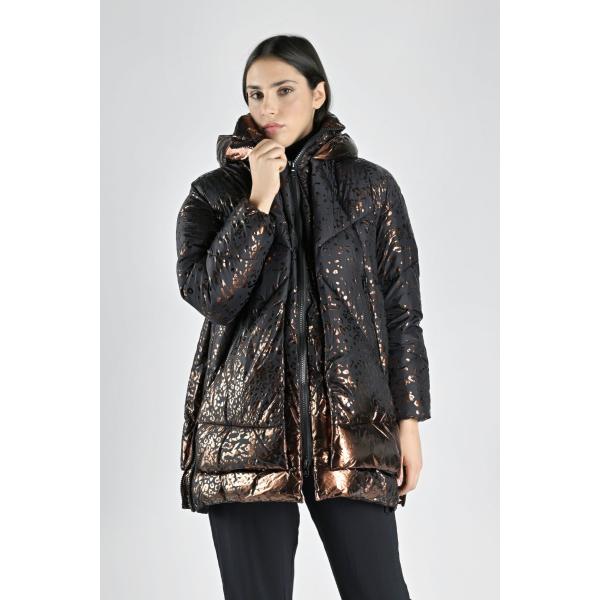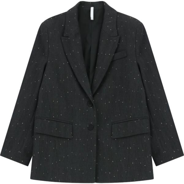 Giacca da donna in nero pece con stampe con paillettes con bottoni