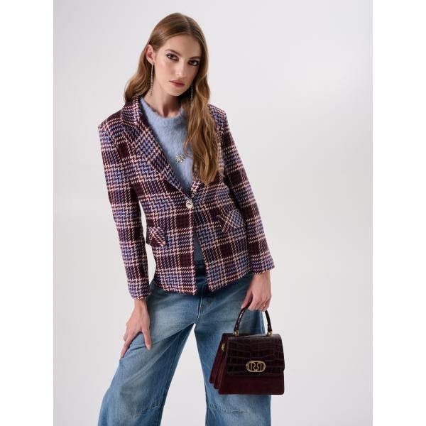 Giacca da donna in rosso classico pied de poule monopetto in denim