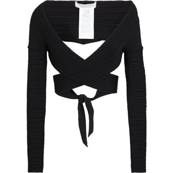 Giacca da donna in nero pece senza tasche a maniche lunghe con lacci in viscosa