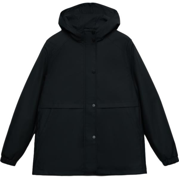 Giacca soprabito da donna in nero pece collo con cappuccio tessuto impermeabile con zip