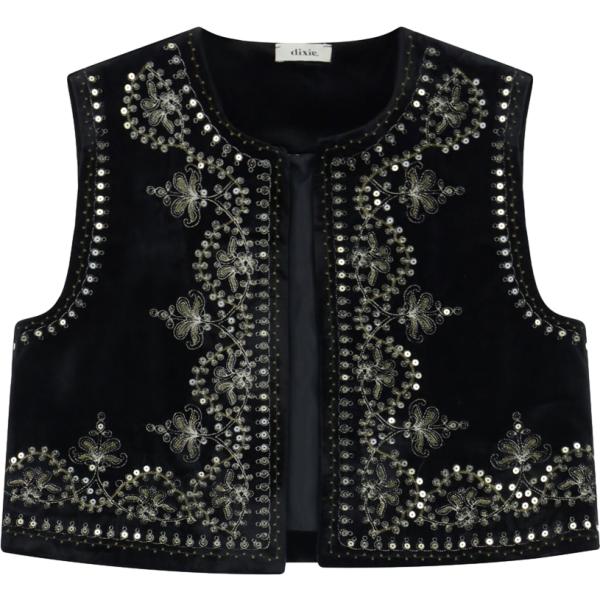 Perfetto per chi ama distinguersi con stile, questo gilet eco-fur è arricchito da ricami floreali applicati sul davanti e finiture in pelliccia sintetica su collo, orlo e giromanica. Versatile e femminile, dona un tocco originale sopra abiti lunghi o bluse leggere per le giornate fuori porta.