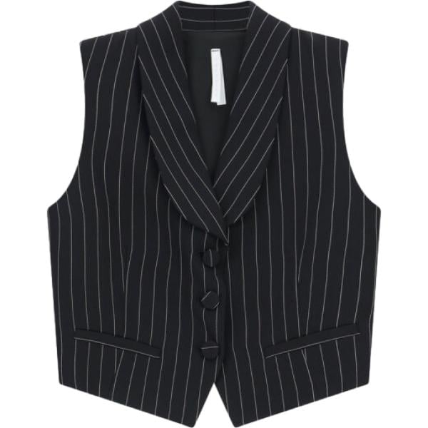 Gilet da donna in nero pece a righe corto a vita alta con bottoni