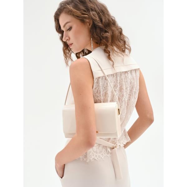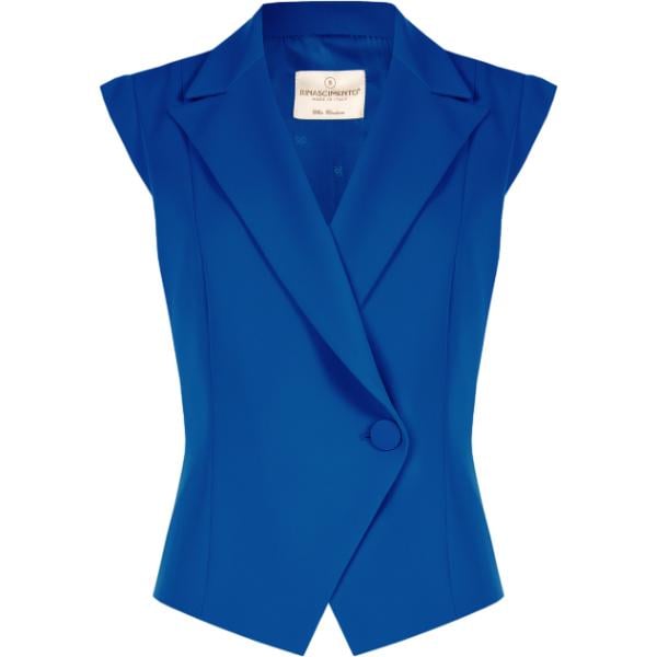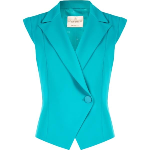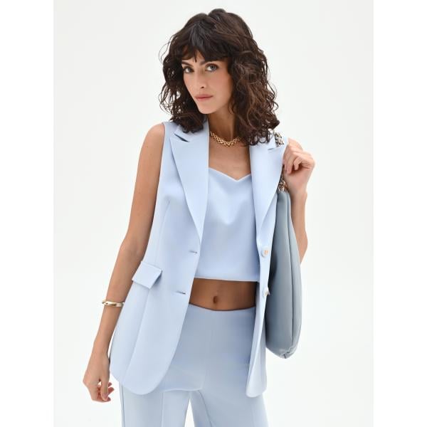 Gilet da donna in azzurro effetto lucido con scollo con cintura
