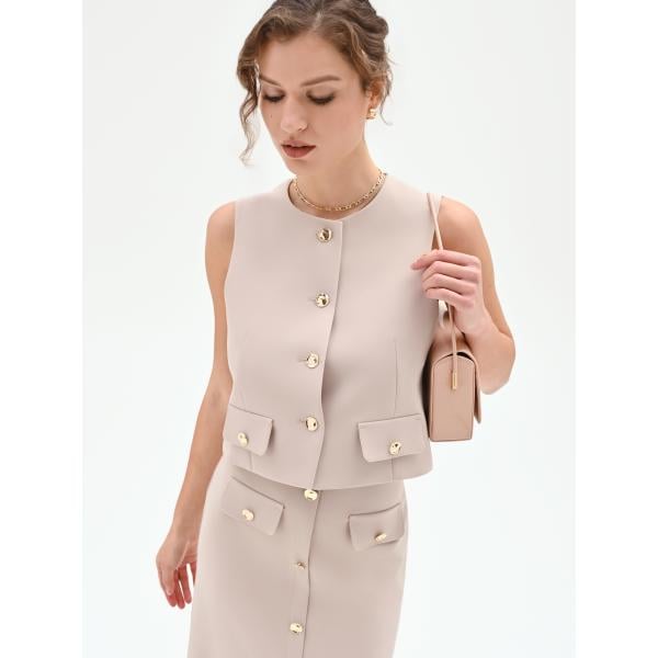 Gilet da donna in grigio chiaro con scollo a punta con bottoni