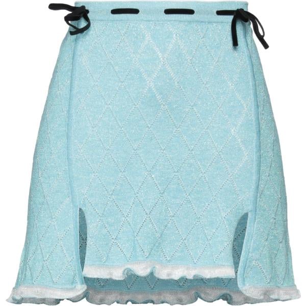 Gonna da donna in blu Bpc Bonprix Collection, Sciarpa da donna in blu con stampe Desigual, Sandali in pelle da donna in blu effetto scamosciato con tacco zeppa con cinturino in pelle Port'er, Top da donna in verde con scollo corto a maniche corte in poliestere Hdl Milano, Borsa a tracolla da donna in verde Pieces.