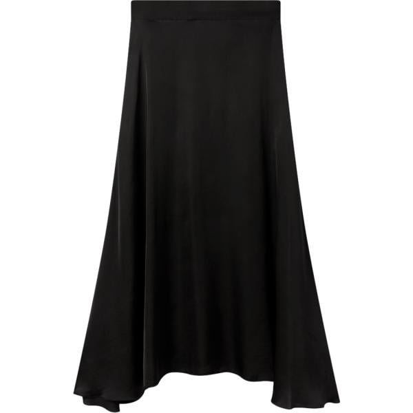 Gonna longuette da donna in nero pece con frange con tacco a vita alta con zip Rinascimento