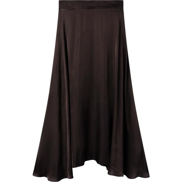 Décolleté da donna in marrone scuro con fiocco con tacco in pelle Lauren, Camicia da donna con stampe a maniche lunghe Imperial, Borsa tote da donna in marrone scuro effetto scamosciato Lauren, Orecchini da donna in arancione chiaro con perle Lauren, Gonna longuette da donna in nero pece con frange con tacco a vita alta con zip Rinascimento, Giacca soprabito da donna in marrone chiaro girocollo Lauren.