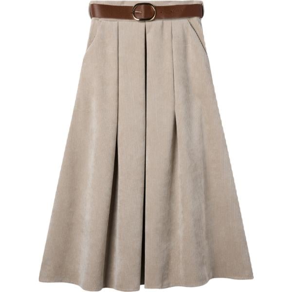 Cintura da donna in marrone scuro con fibbia in pelle bonprix, Gonna lunga da donna in bianco avorio lungo bonprix, Stivali da donna in marrone chiaro effetto scamosciato in pelle Colors of California, Cappotto da donna in marrone chiaro bonprix, Maglione da donna in bianco avorio girocollo Dixie.