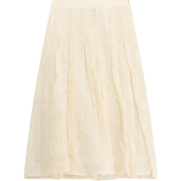 Gonna lunga da donna in bianco avorio plissè lungo a vita alta con cintura