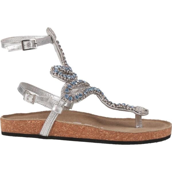 Infradito da donna in bianco neve con strass senza tacco a punta tonda con cinturino in pelle Strategia