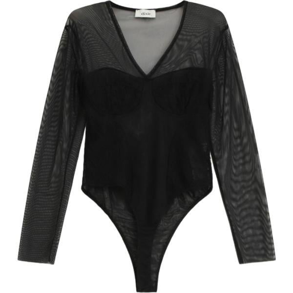 Corpo da donna in nero pece collo a v a maniche lunghe