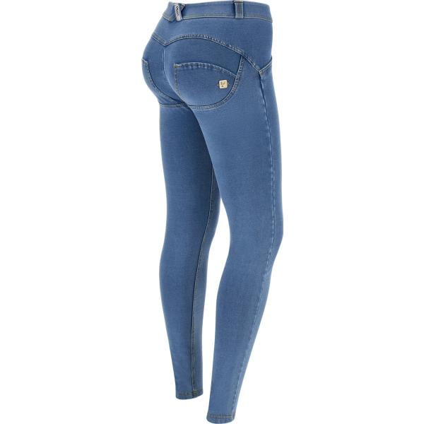 La linea di pantaloni N.O.W.® asseconda ogni tuo movimento senza costrizioni grazie allo speciale tessuto bi-elastico e resistente che facilita i movimenti e al contempo segue alla perfezione le linee del corpo definendole senza costringere la silhouette. Questo modello combina il design di un jeans a 5 tasche con la vita pulita senza zip e bottoni tipica dei leggings ed è realizzato in D.I.W.O.® recycled uno speciale tessuto brevettato da Freddy ottenuto da bottiglie di plastica trasformate in fibra e privo di tinture tossiche studiato per favorire la traspirazione e la termoregolazione della pelle. - Vita media - Vestibilità superskinny - Lunghezza 7/8 - Fascia in vita senza zip e bottoni - Cameo in metallo con strass sulla tasca posteriore - Tessuto D.I.W.O.® recycled
