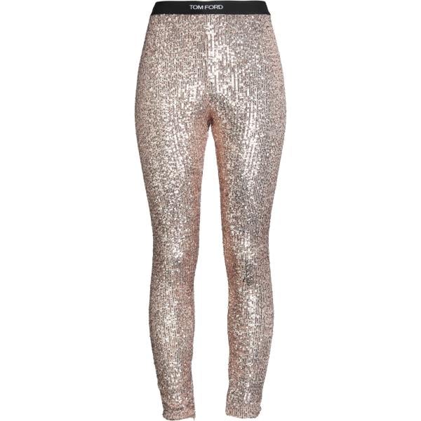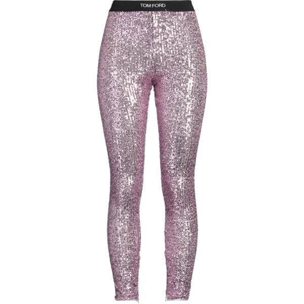 Leggings da donna in viola chiaro con paillettes a vita alta