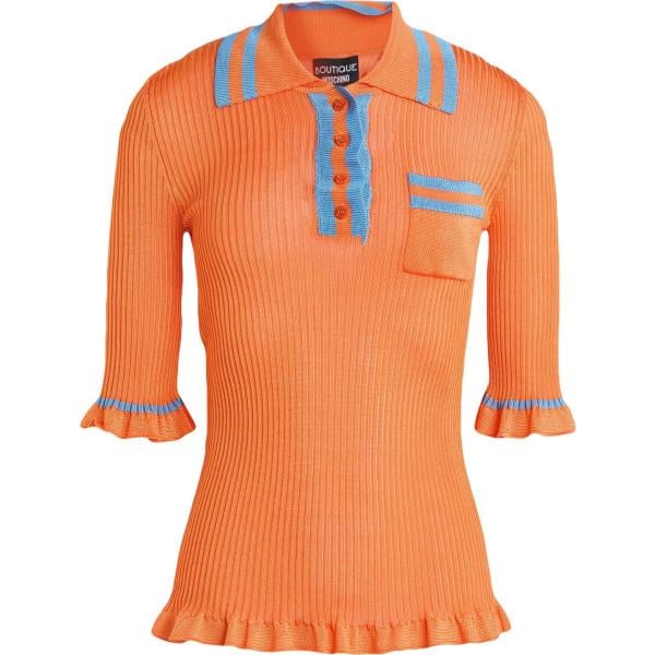 Pantaloni skinny da donna in rosso classico vegan a vita bassa con zip in ecopelle Freddy, Sciarpa da donna in beige sabbia a quadri con frange lungo Dixie, Maglione da donna in arancione scuro lavorato a maglia collo a dolcevita a maniche lunghe Imperial, Zaino da donna in arancione chiaro con zip Emporio Armani, Stivaletti da donna effetto scamosciato senza tacco a punta tonda in pelle Mou.