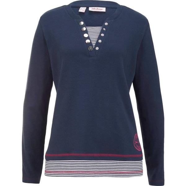 Stivaletti da donna in beige sabbia con zip Cafe' Cost, Giacca da donna in blu scuro a righe in viscosa Fiorella Rubino, Pantaloni da donna in beige sabbia bonprix, Shopping bag da donna in beige sabbia in ecopelle bonprix, Maglione da donna in beige sabbia a righe bonprix, Collana da donna in beige sabbia geometrica a punta Imperial.