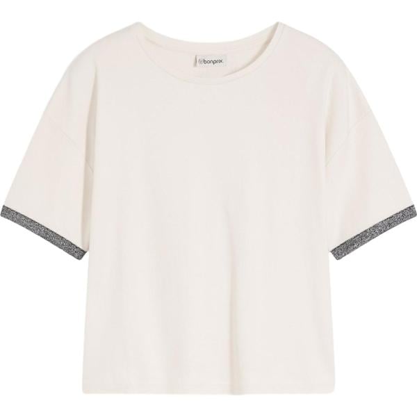 Maglione da donna in bianco avorio girocollo a maniche lunghe a vita alta in viscosa Terranova