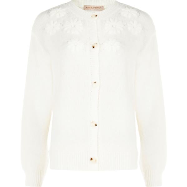 Maglione da donna in grigio chiaro a fiori effetto laminato girocollo a maniche lunghe in lana Fiorella Rubino