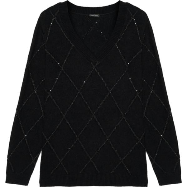 Maglione da donna in grigio scuro a righe con paillettes con scollo a maniche lunghe in lana Fiorella Rubino