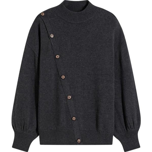 Jeans skinny da donna in nero pece in denim bonprix, Maglione da donna in nero pece lavorato a maglia collo a v lungo a maniche lunghe bonprix, Cappotto da donna in grigio scuro corto con bottoni bonprix, Shopping bag da donna in grigio scuro con zip Terranova, Sneakers da donna in bianco avorio con lacci Terranova.