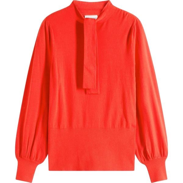 Maglione da donna in rosso classico lavorato a maglia collo a v in lana Doppelganger, Sandali con tacco da donna in beige sabbia con tacco Terranova, Pantaloni da donna in rosa chiaro a vita alta Dixie, Borsa a tracolla da donna in grigio scuro animalier Terranova, Cardigan da donna in rosa chiaro lavorato a maglia bonprix, Collana da donna forma asimmetrica in bianco avorio con perle Dixie.