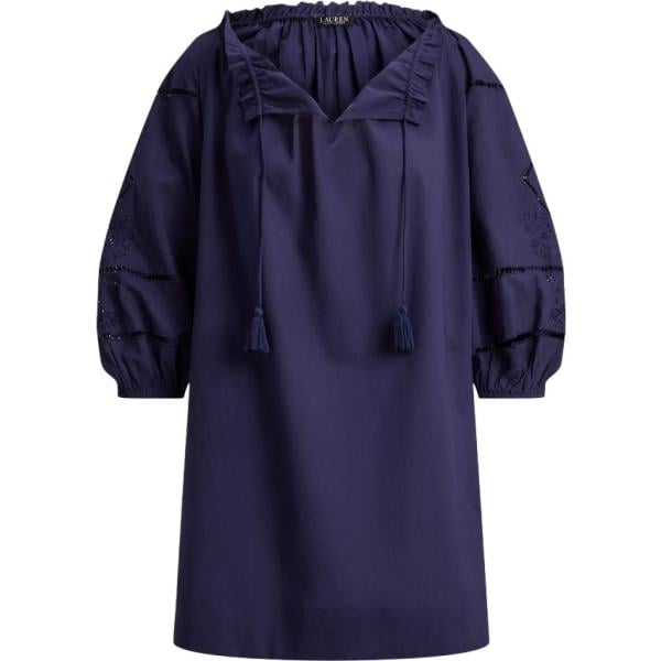 Vestito da spiaggia da donna in blu scuro con ruches con scollo in cotone