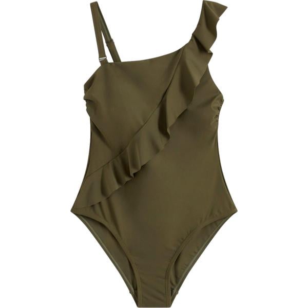 Bikini da donna in verde scuro modellante a vita alta con cintura