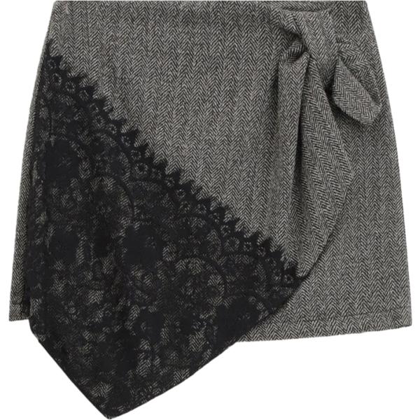 Minigonna da donna in marrone scuro con stampe con ruches corto a vita alta con cintura Dixie