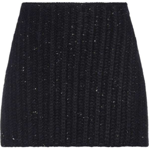 Minigonna da donna in nero pece a quadri effetto laminato corto in lana Pinko