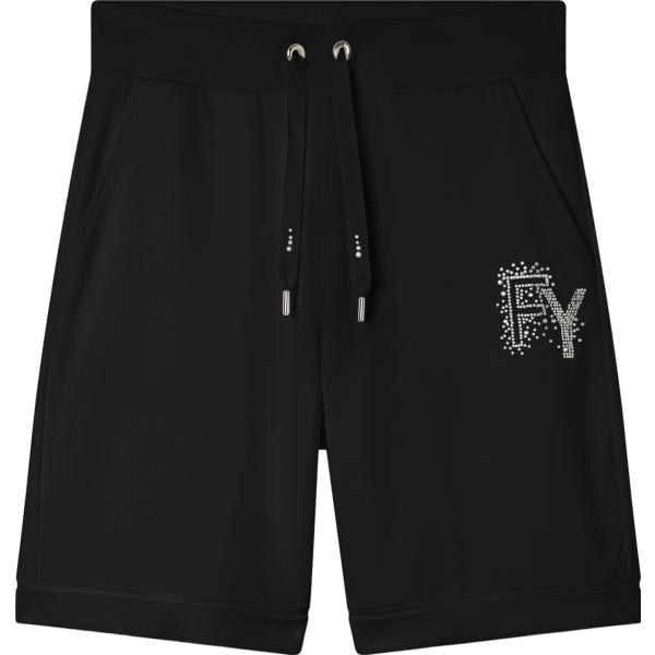 Pantaloncini sportivi da donna in nero pece con strass con coulisse