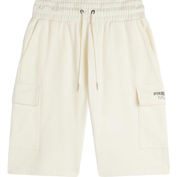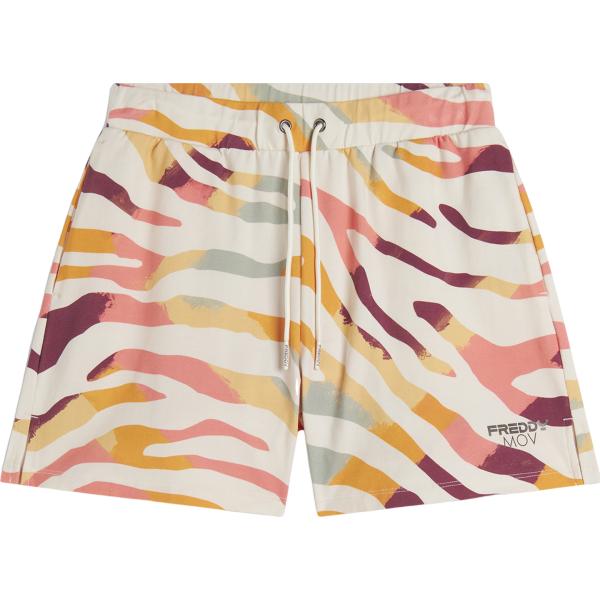 Pantaloncini sportivi da donna in bianco avorio con stampe effetto laminato con coulisse