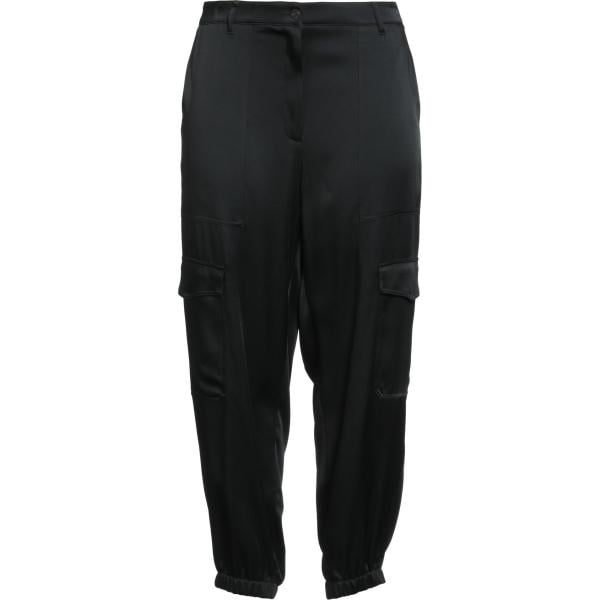 Pantaloni cargo da donna in nero pece a vita alta con zip in viscosa