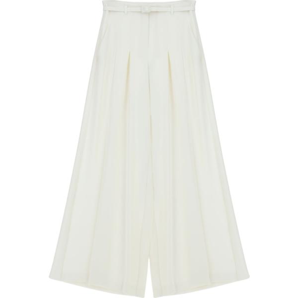 Pantaloni a palazzo da donna in bianco avorio a vita alta con cintura Dixie