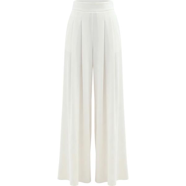 Pantaloni a palazzo da donna in bianco avorio con stampe a vita alta con cintura Imperial