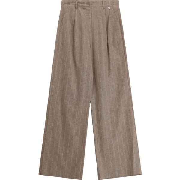 Pantaloni a palazzo da donna in marrone scuro a righe a vita alta