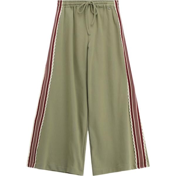 Pantaloni a palazzo da donna in verde oliva a righe a vita alta